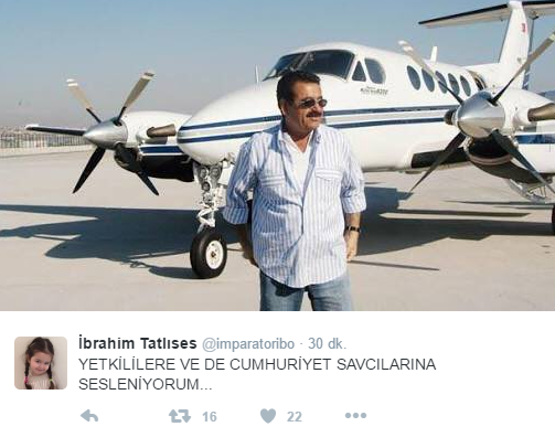 İnstagram hesabı üzerinden yaptığı açıklama ile ilerleyen bu süreçte kendi ticari işlerine de FETÖ/PDY’nin engel olmaya çalıştığını iddia eden İbrahim Tatlıses, yaptığı açıklamalarda terör örgütünün ele başı Fethullah Gülen’in gizlice ülkeye gitirilmiş olabileceğini de iddia etti.