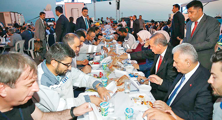 Açılış Osmangazi Köprüsü’nün Dilovası kesiminde yapıldı. Erdoğan alana helikopter, Yıldırım ise otomobille geldi. Arnavutluk Başkanı Edi Rama ile Başbakan Yıldırım, Erdoğan’ı karşılayıp, alana yürüyerek geldi. Erdoğan ile Rama kürsüye çıkarak, vatandaşları selamladı. Yıldırım, Kütahya Taşvanlı’da iftar sofrasında davet ettiği maden işçileri ile bir süre görüştü. Kendileriyle köprü önünde hatıra fotoğrafı çektirdi. Konuşmaların ardından, Erdoğan, Yıldırım, konuk başbakan Rama ve protokol katılımcılarının kurdele kesimiyle köprünün açılışı yapıldı. Bu arada, milli motosikletçi Kenan Sofuoğlu’nun, köprüde yaptığı ve saatte 400 kilometre hıza ulaştığı sürüşün görüntüleri izlettirildi. Ulaştırma Denizcilik ve Haberleşme Bakanı Ahmet Arslan, Erdoğan’a köprünün maketini hediye etti, Yıldırım’a da plaket takdiminde bulundu. Köprüde motosiklet kullanan Sofuoğlu da bir süre sohbet ettiği Cumhurbaşkanı Erdoğan ile Başbakan Yıldırım’a, imzalı kaskını ve Türk bayrağı hediye etti. Açılışın ardından 10 bin kişi toplu halde iftar yaptı.